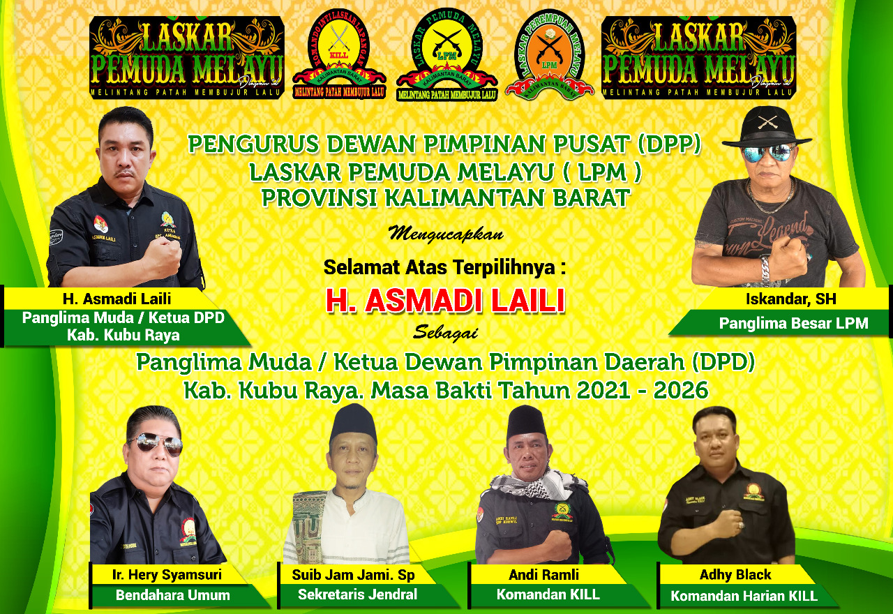 Mantan ketua DPC LPM SUI Ambawang H.ASMADI LAILI resmi ketuai PANGLIMA MUDA / DPD LPM KUBU RAYA, banyak harapan dari seluruh anggota LPM baik yang berasal dari Pengurus Anak Cabang sampai Dewan Pimpinan Cabang menaruh harapan yang besar terhadap LPM KUBU RAYA Kedepannya dengan sinergi yang baru dan suasana tahun yang baru diharapkan LPM KUBU RAYA menjadi wadah bagi Pemuda Pemuda Melayu untuk menuangkan segala inovasi, inspirasi dan semangat untuk membantu ekonomi, budaya, sosial dan budaya.