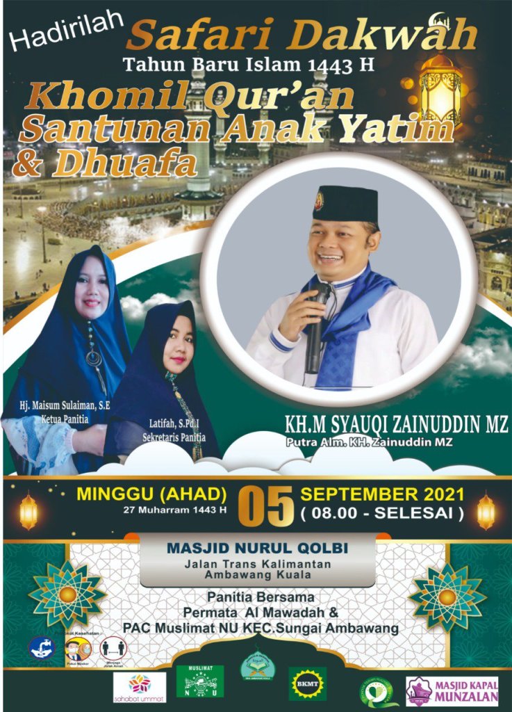 Minggu, tanggal 5 September 2021 bertempat di Masjid Nurul Qolbi H.Asmadi Laili menghadiri Safari Dakwah Tahun Baru Islam 1443 H bersama KH. M SYAUQI ZAINUDIN MZ acara tersebut juga sebagai bentuk silahturahmi bersama dengan Keluarga Besar Ibu Pengajian Permata Al Mawadah dan PAC MUSLIMAT NU SUI Ambawang dan acara kegiatan tersebut juga dilakukan pemberian santunan untuk anak yatim piatu